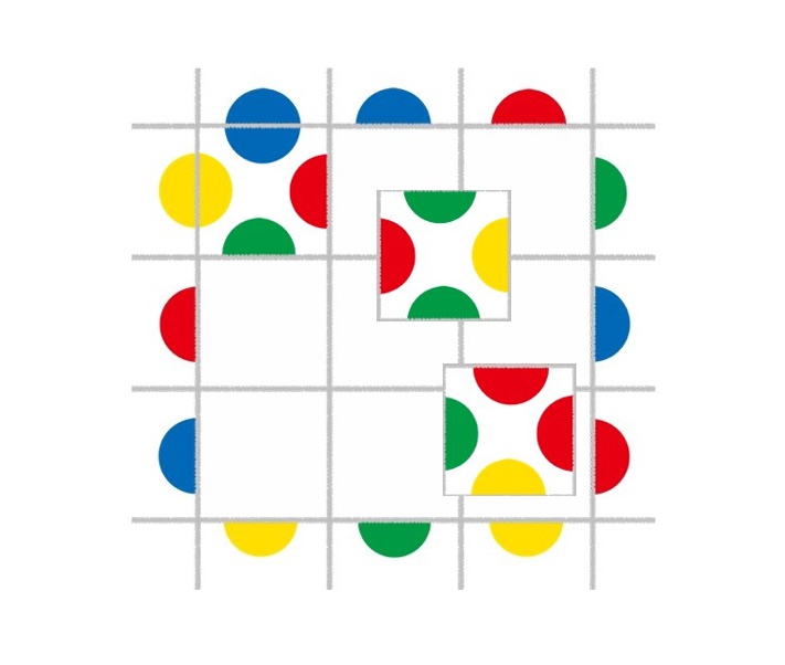 ◎ルールは、図のように色と形をヒントに、正しい位置に置いていくだけ!