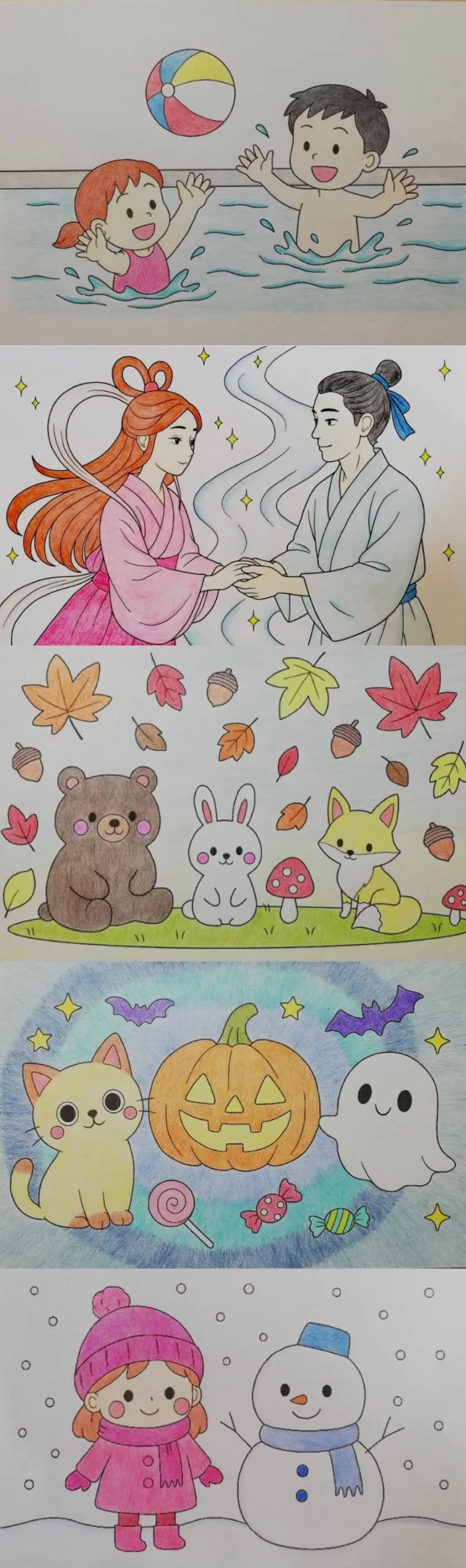 それぞれに季節の空気感が出ているのが良いですよね!色塗りが丁寧で絵本の挿絵に出てきそうなやさしさがあります😊✨