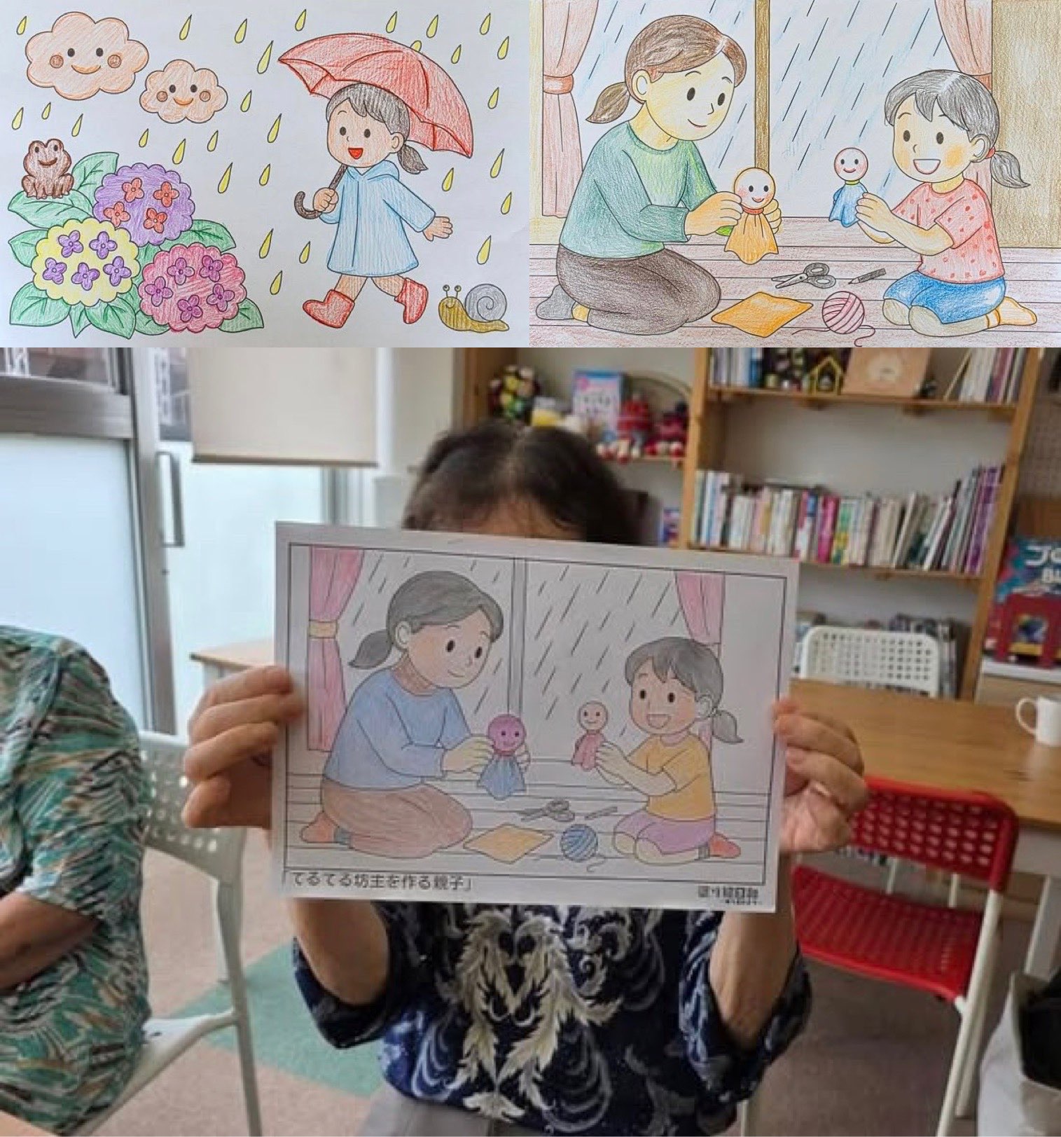 「梅雨」「てるてる坊主を作る親子」