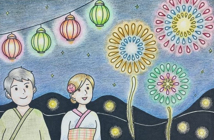 浴衣と花火の組み合わせ、色付けがとても綺麗で見ているとワクワクしますよね!素敵な作品ありがとうございました🎆✨